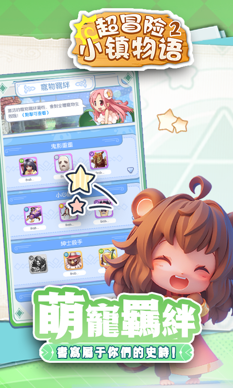 《超冒险小镇物语2》是一款非常好玩的Q版回合制卡牌冒险游戏,你将在游戏中收集到各种熟悉角色的卡牌,培养他们组成强大的阵容,去挑战各种剧情关卡与活动玩法。游戏还有超多的魔宠可以培养,放置玩法轻松又有趣,吉芬爬塔、探索斐扬迷宫等玩法还在等着你去挑战。