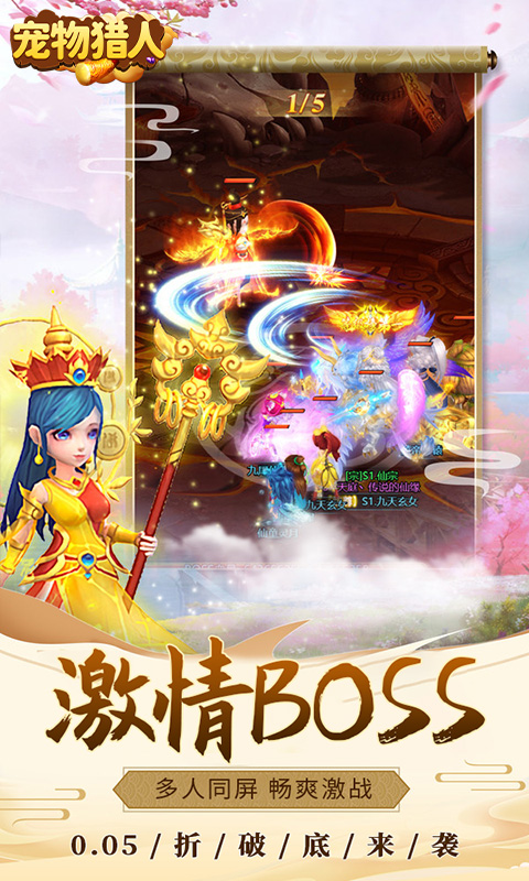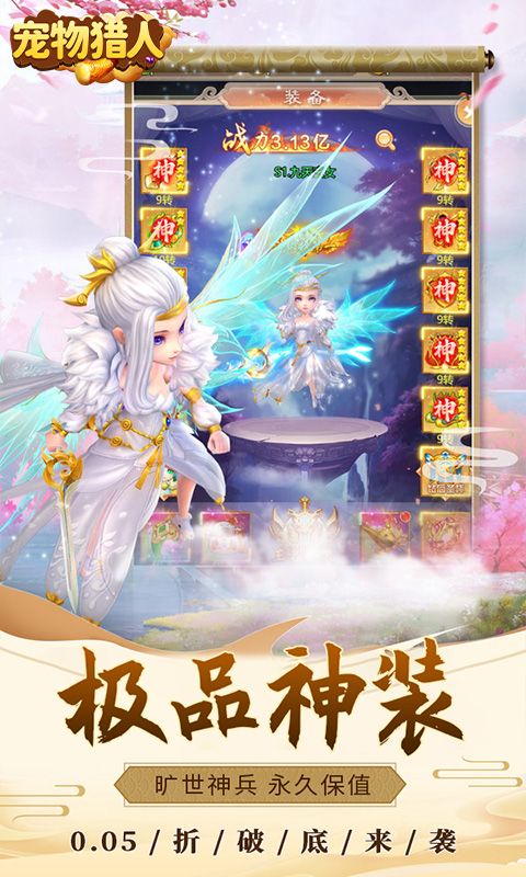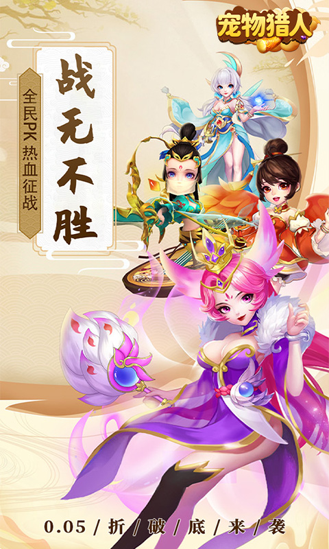 《宠物猎人(0.05折扣版)》是一款以战力养成为主,集合成宠物收集养成、PVE副本探索、PVP单区宗主,连服宗门,跨服争皇等玩法的H5国风Q版放置回合制手游!乖萌可爱,勇武有力,各具特色的几十种类型宠物皆可通过游戏内玩法免费获取,每种宠物都拥有专属的技能保驾护航!画风清丽脱俗,战斗刺激带感,还有丰富多样的游戏玩法,无论是PK,竞技还是副本开荒,亦或是悠闲地交友聊天都可以发现许多乐趣,让你在愉快的游戏中和万千仙友一起轻松修仙。